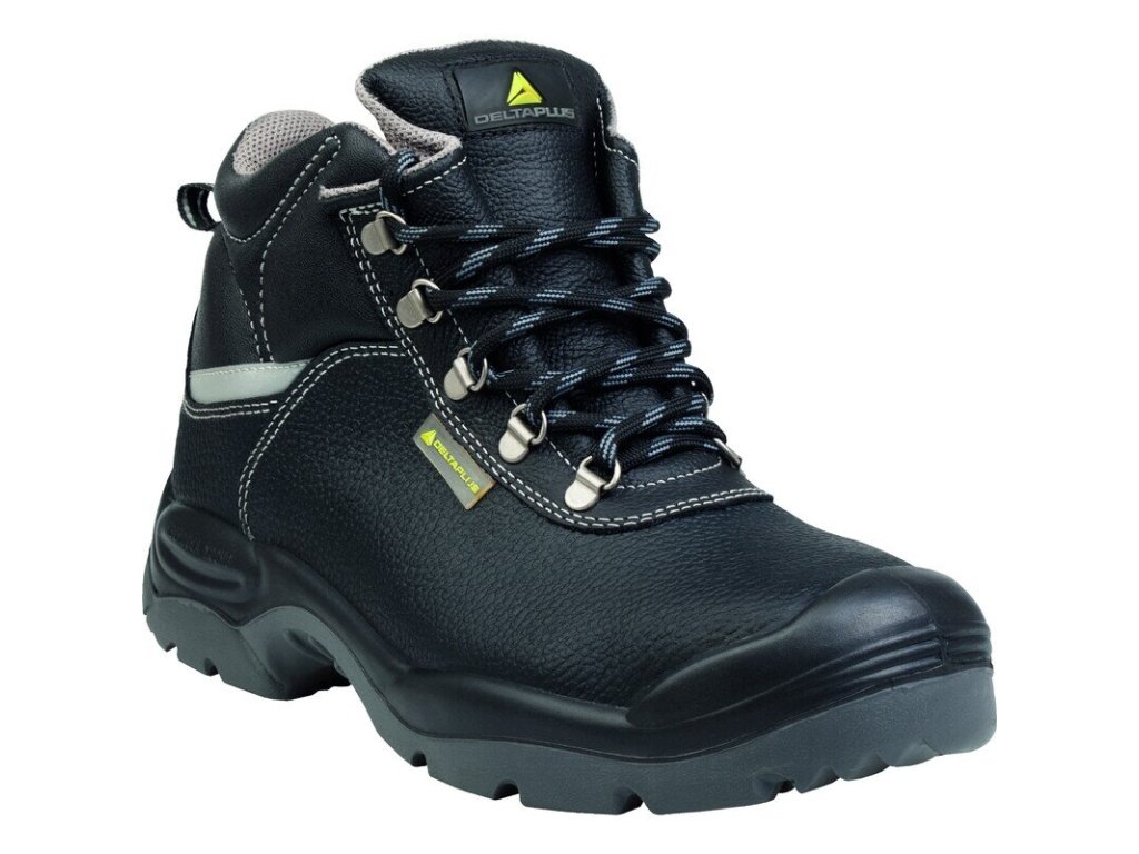 Pevná vodeodolná členková obuv s oceľovou špicou a stielkou proti prepichu.