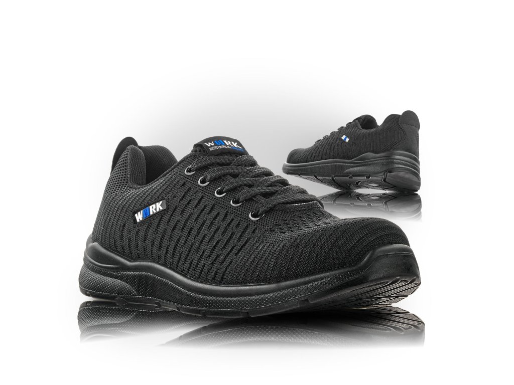 Pohodlné a štýlové bezpečnostné poltopánky z pletenného oderuvzdorného textilu , ktoré spĺňajú prísne bezpečnostné normy na ochranu zdravia.