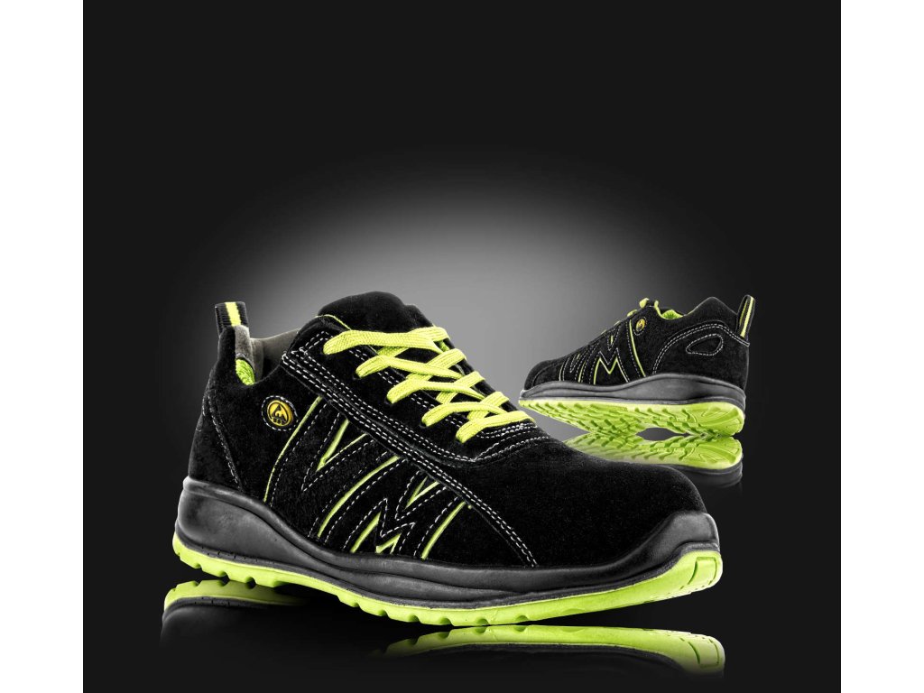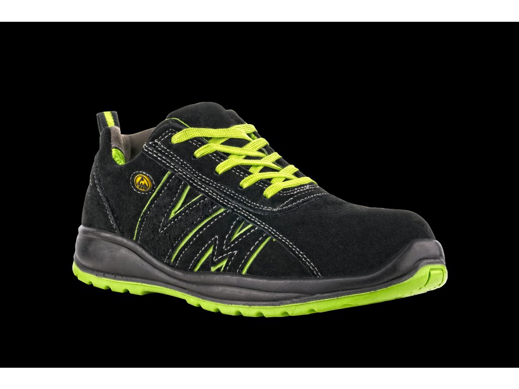 ESD bezpečnostné poltopánky vo výbornej kvalite a modernom štýle športových tenisiek. Ľahká pracovná obuv s plastovou špičkou, ktorá je dostatočne široká, takže vás nebude tlačiť pri výkone vašej činnosti. Spoľahlivá protišmyková podrážka, ktorá zaručuje vysokú mieru stabilitu na rôznorodých povrchoch. charakteristikou tejto obuvi je vysoká výdrž, čo spôsobuje dlhú životnosť. Výborná čierno-zelená kombinácia, ktorou môžete skvelo doplniť svoj outfit.