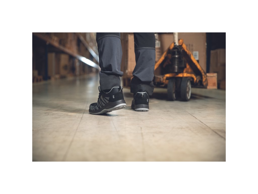• ľahká bezpečnostná poltopánka v modernom, športovom dizajne • zvršok obuvi je vyrobený z priedušného textilu • protišmyková podošva odolná olejom je vyrobená z dvojhustotného polyuretánu a zaisťuje maximálnu istotu pri každom kroku • naviac je topánka vybavená komfortnou vnútornou stielkou, ktorá garantuje pohodlie behom chôdze • absorpcia energie v päte tlmí nárazy a obmedzuje pocit únavy nôh • vďaka ľahkej, modernej bezpečnostnej špičke vyrobenej zo skleneného vlákna splňuje obuv požiadavky normy EN ISO 20345:2011 • to znamená, že chodidlá sú chránené pred stlačením silou do 15kN alebo pádom bremena s váhou do 20kg z výšky 1m • obuv neobsahuje kovové súčasti a preto je to ideálny model pre interiér alebo pre priestory vybavené bezpečnostným rámom • vďaka moderným materiálom použitým na výrobu tohto modelu nepresahuje celková váha topánky 495g (polpár, veľkosť 42) • minimalistický dizajn a moderné farby sa budú skvelo hodiť k väčšine kolekcií pracovných odevov Cerva