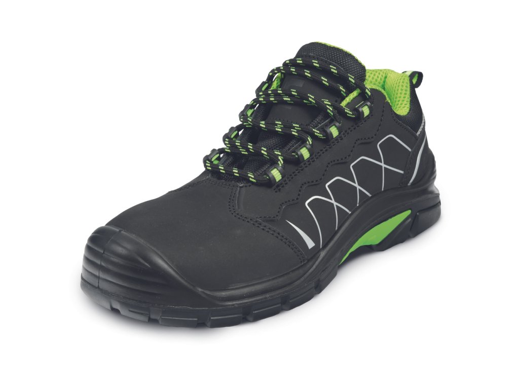 • moderná bezpečnostná poltopánka s kompozitnou stielkou proti prepichu a kompozitnou tužinkou v špici, ktorá chráni pred stlačením silou do 15 kN alebo pádom bremená s váhou do 20 kg z výšky 1 m • antistatická podrážka vyrobená z kombinácie polyuretánu a veľmi odolnej gumy garantuje ale aj bezpečie vďaka protišmykovým vlastnostiam podrážky, ktorá je navyše rezistentná olejom a oderu • zvršok obuvi je vyrobený z prírodnej kože „NUBUCK a vnútorná podšívka z priedušného polyesteru • reflexné prvky garantujú zvýšenú viditeľnosť užívateľa • tento model je vybavené komfortnou vnútornou stielkou, ktorá vďaka gélovej päte ešte lepšie tlmí nárazy a prináša maximálny pocit pohodlia počas práce • tyto topánky vyzerajú ako športová obuv, ale pri tom dokonale ochránia vašej nohy • v každej krabici druhy pár šnúrok navyše