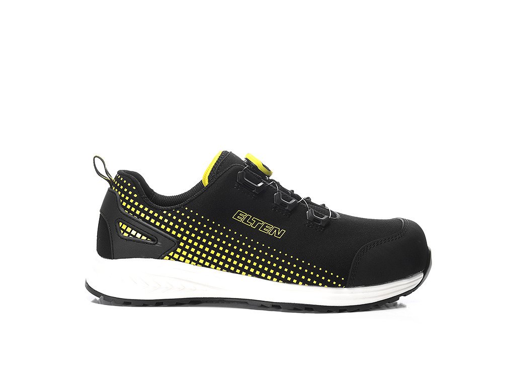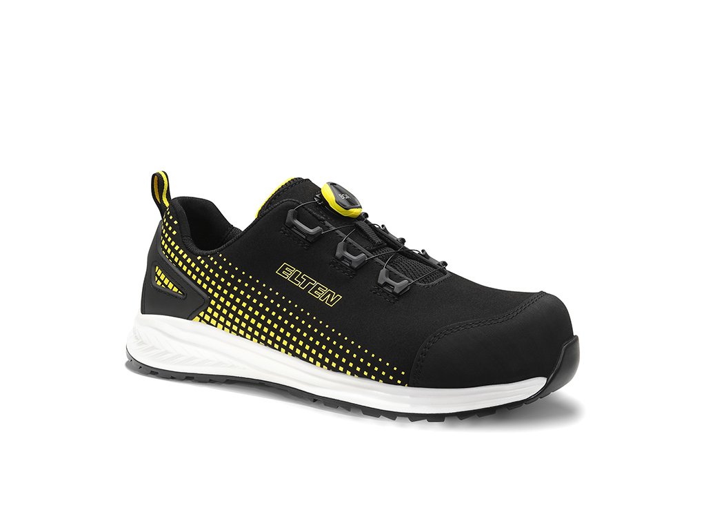 Elten Joran BOA® Low ESD S3 – čierna/žltá - Moderná a technicky vyspelá bezpečnostná obuv, navrhnutá pre profesionálov, ktorí očakávajú maximálny výkon, komfort a jednoduché ovládanie. Vďaka rýchloupínaciemu systému BOA® Fit System umožňuje rýchle a presné prispôsobenie topánky na nohu – dokonale, bez šnúrok.
