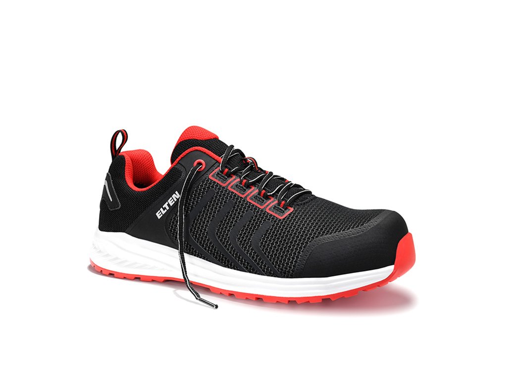 Elten Livas Low ESD S1P – čierna/červená - Športovo ladená bezpečnostná obuv, ktorá kombinuje moderný dizajn, vysoký komfort a spoľahlivú ochranu pre každodenné používanie v suchom pracovnom prostredí. Tento model od renomovanej značky Elten patrí do línie, kde sa bezpečnosť stretáva s ľahkosťou a dynamikou.