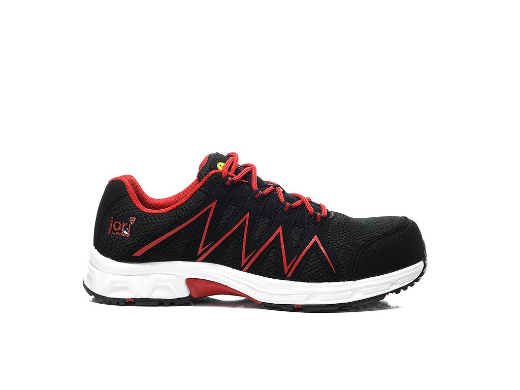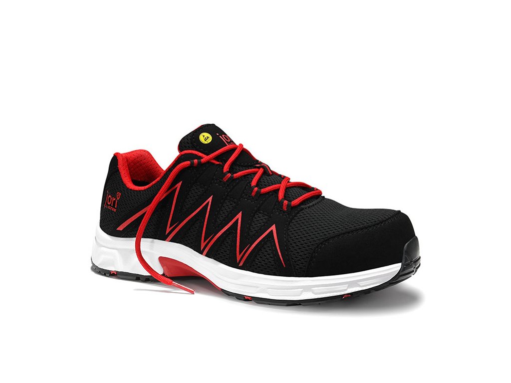 JORI Pro SPEEDY Low ESD S3 – odolná, priedušná a vizuálne výrazná bezpečnostná poltopánka v čierno-červenom dizajne. Spoľahlivá ochrana, nízka hmotnosť a moderný vzhľad robia z tohto modelu ideálneho spoločníka do náročného pracovného prostredia.