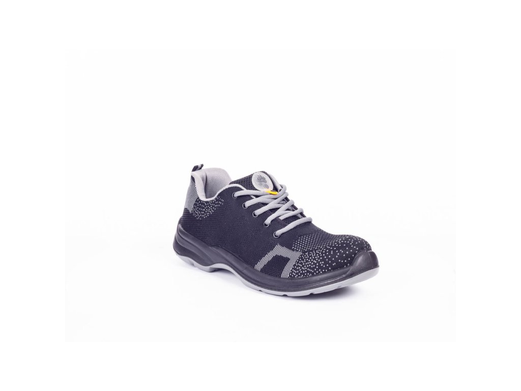 Bezpečnostná kompozitná špica chráni prsty pred nárazmi, zatiaľ čo ESD certifikácia zabezpečuje bezpečné použitie v prostredí s elektronickými zariadeniami.