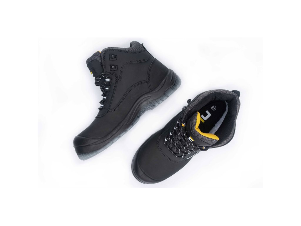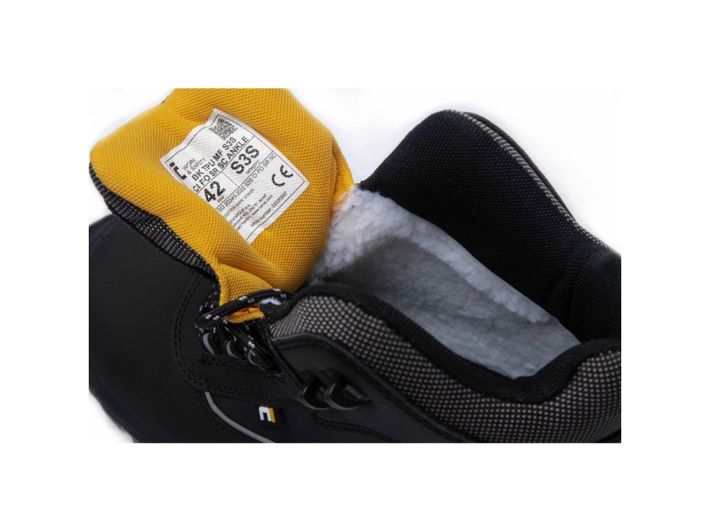 Zateplená bezpečnostná poloholeňová obuv s nekovovou tužinkou a aramidovou stielkou odolnou proti propichnutiu. Podošva z PU/TPU. Zvršok z kvalitnej kože – nubuk.