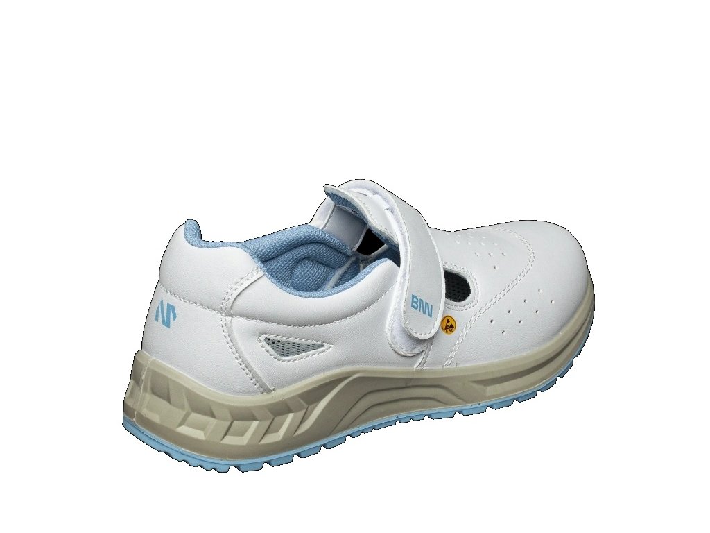 Biela obuv, dobre umývateľná, antistatická obuv s ESD vlastnosťami.