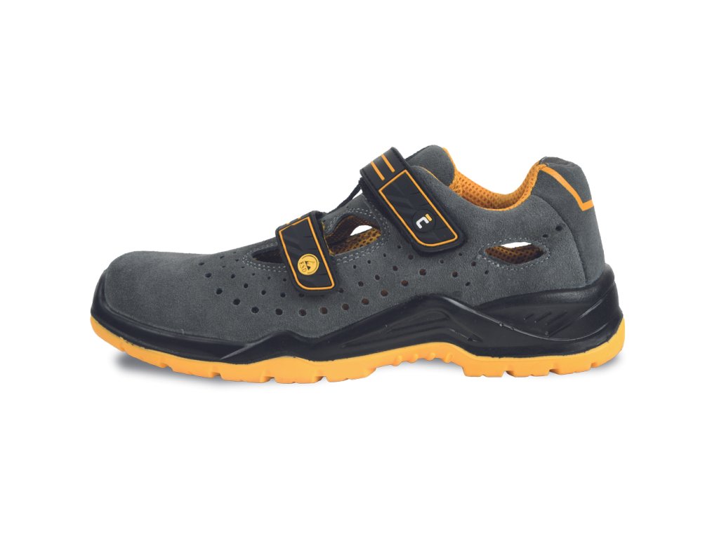 bezpečnostný sandál s kompozitnou tužinkou; zvršok obuvi je vyrobený z mikrovlákna; protišmyková podošva odolná olejom je vyrobená z dvojhustotného polyuretánu; kompozitná stielka proti prepichu; obuv neobsahuje kovové súčasti a je vybavená funkciou ESD