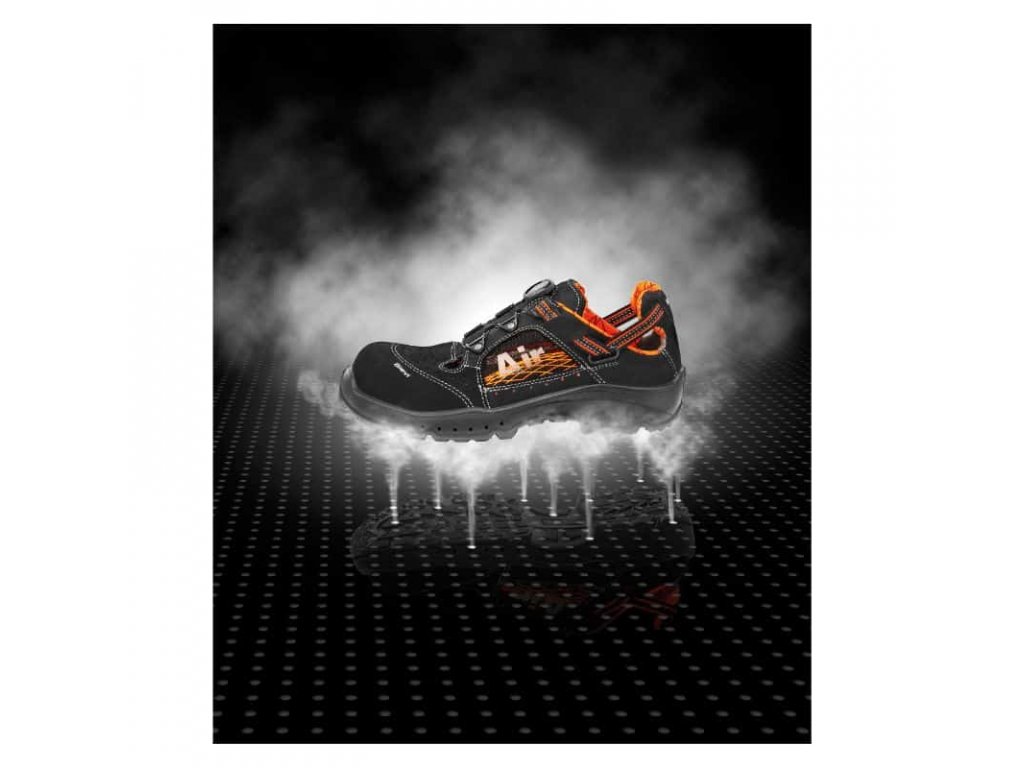 Sandále s oceľovou medzipodrážkou odolnou proti prepichnutiu a podošvou SieviAir® pre zvýšený komfort a účinnú ventiláciu. Podšívka 3D-dry® zvyšuje priedušnosť prenosom vlhkosti z chodidiel. Vrchná koža je mikrovlákno a štiepenka. Protišmyková a pružná polyuretánová podošva je odolná voči olejom a množstvu chemikálií. ESD. Systém BOA® Fit.