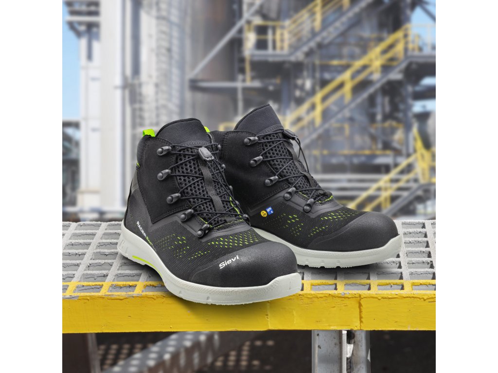 Vlastnosti: antistatické, vodeodolné, odolné voči olejom, ESD obuv, ktorá odstraňuje statickú elektrinu, flexibilita päty FlexStep®, vložka DUAL Comfort, 3D suchá podšívka, vegan, zapínací mechanizmus Sievi FastLace™