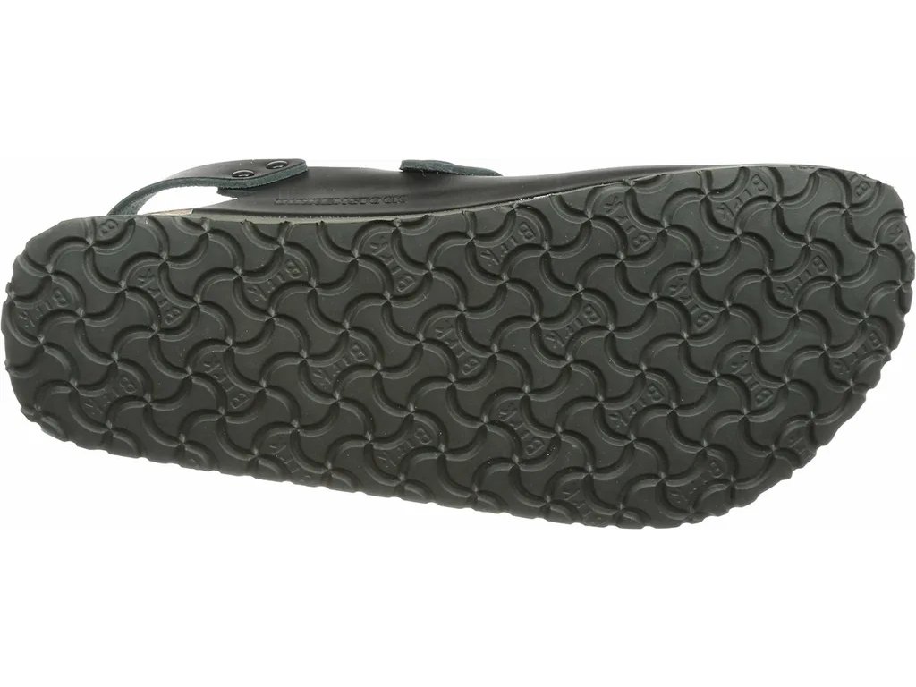 Uzavretá päta s nastaviteľným remienkom poskytuje stabilné uchytenie chodidla a anatomicky tvarovaná korkovo-latexová stielka Birkenstock podporuje prirodzenú polohu nohy, tlmí nárazy a znižuje únavu aj pri dlhých zmenách.