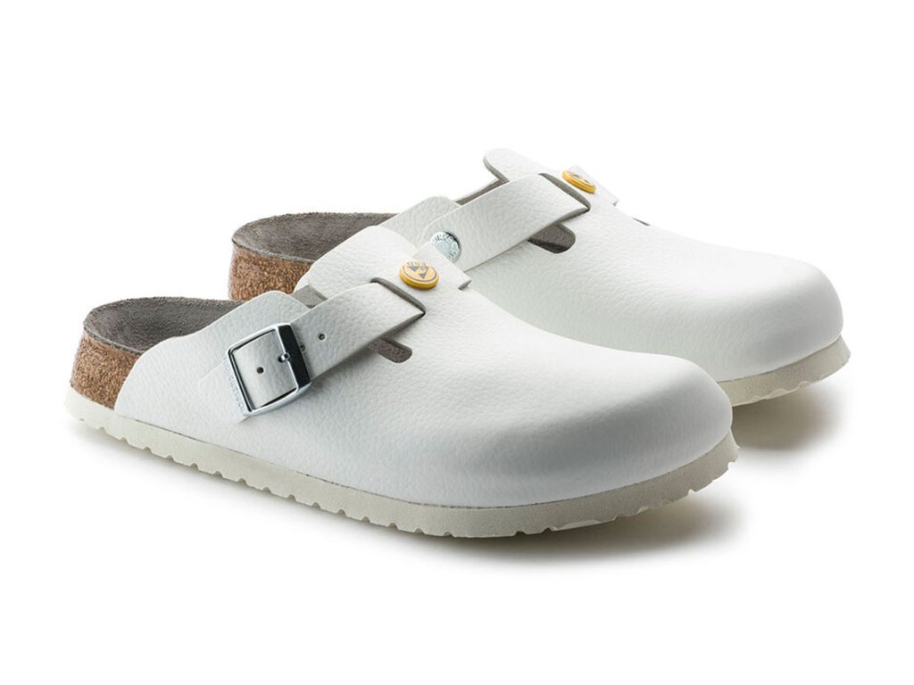 Drevák BIRKENSTOCK Boston je skutočná klasika, ktorú môžete jednoducho nosiť po celý rok. Vďaka svojim dvom komponentom podrážka podporuje stabilitu a pohodlie. Skladá sa z tlmiacej medzipodošvy vyrobenej z EVA a protišmykovej podošvy vyrobenej z pravej gumy. Zvršok je vyrobený z kvalitnej mäkkej prírodnej kože. Všetky modely BIRKENSTOCK ESD sú testované podľa špecifikácií normy DIN EN 61340 a spĺňajú požiadavky v rozsahu ESD od 1,0 x 105 do 3,5 x 107 ohmov.