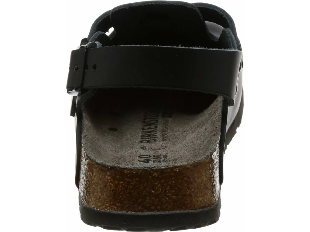 Uzavretá päta s nastaviteľným remienkom poskytuje stabilné uchytenie chodidla a anatomicky tvarovaná korkovo-latexová stielka Birkenstock podporuje prirodzenú polohu nohy, tlmí nárazy a znižuje únavu aj pri dlhých zmenách.