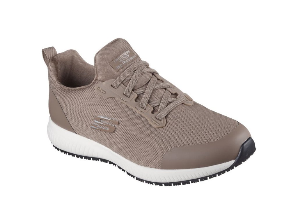 Pracovná poltopánka TPE Skechers Squad SR taupe O1 SRC ESD je ideálnou voľbou pre ženy, ktoré hľadajú pohodlnú, ľahkú a spoľahlivú pracovnú obuv s moderným vzhľadom.
