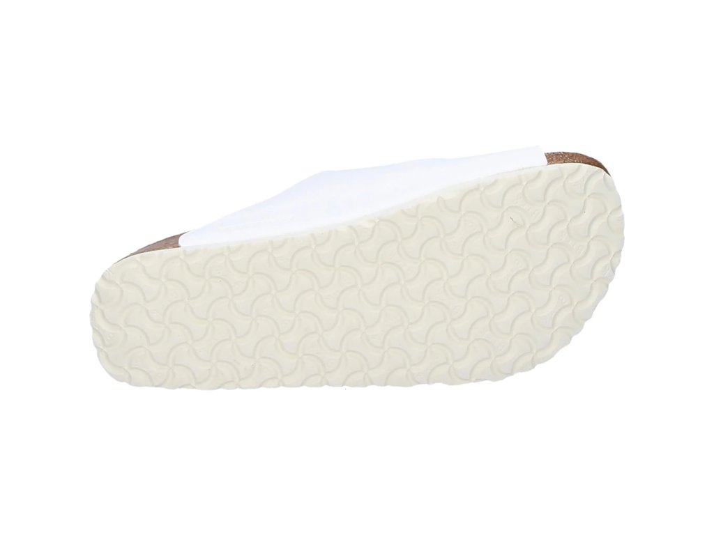 Dva nastaviteľné remienky umožňujú optimálne prispôsobenie chodidlu a anatomicky tvarovaná korkovo-latexová stielka Birkenstock podporuje prirodzenú polohu nohy, tlmí nárazy a znižuje únavu aj pri dlhých zmenách.