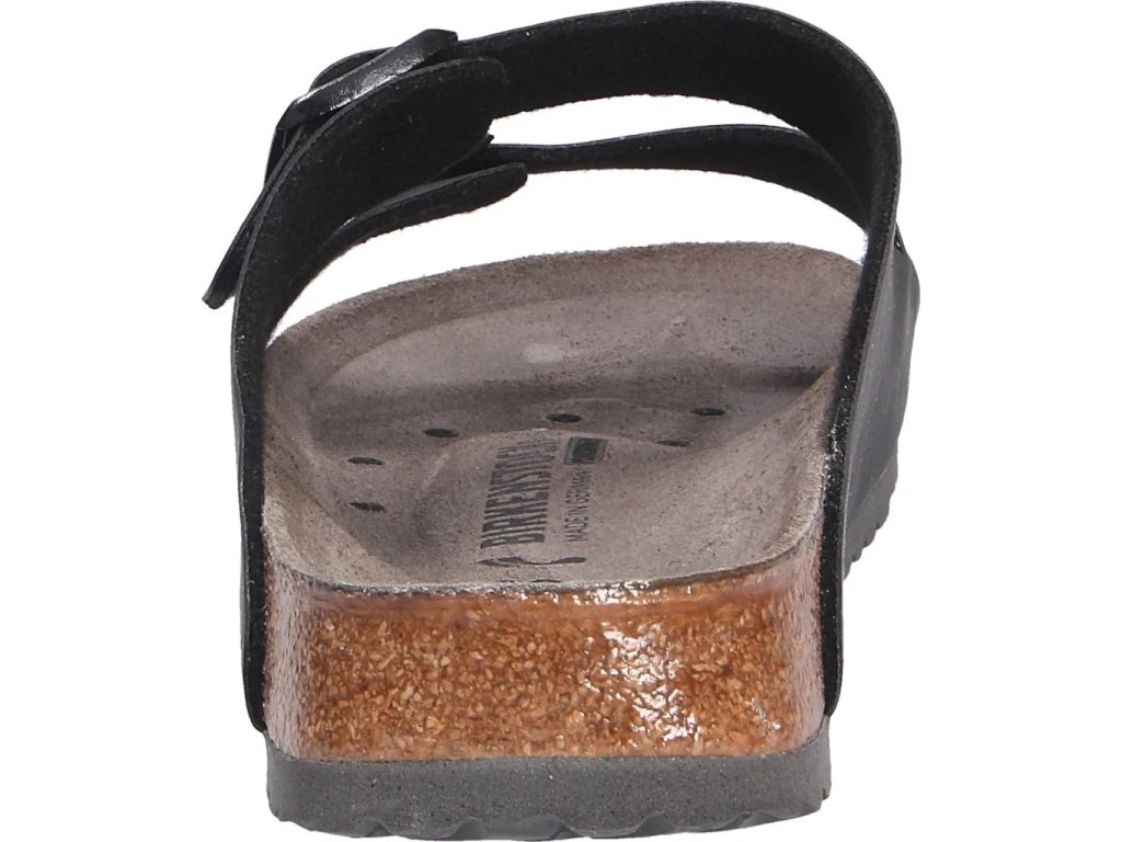 Dva nastaviteľné remienky umožňujú optimálne prispôsobenie chodidlu a anatomicky tvarovaná korkovo-latexová stielka Birkenstock podporuje prirodzenú polohu nohy, tlmí nárazy a znižuje únavu aj pri dlhých zmenách.