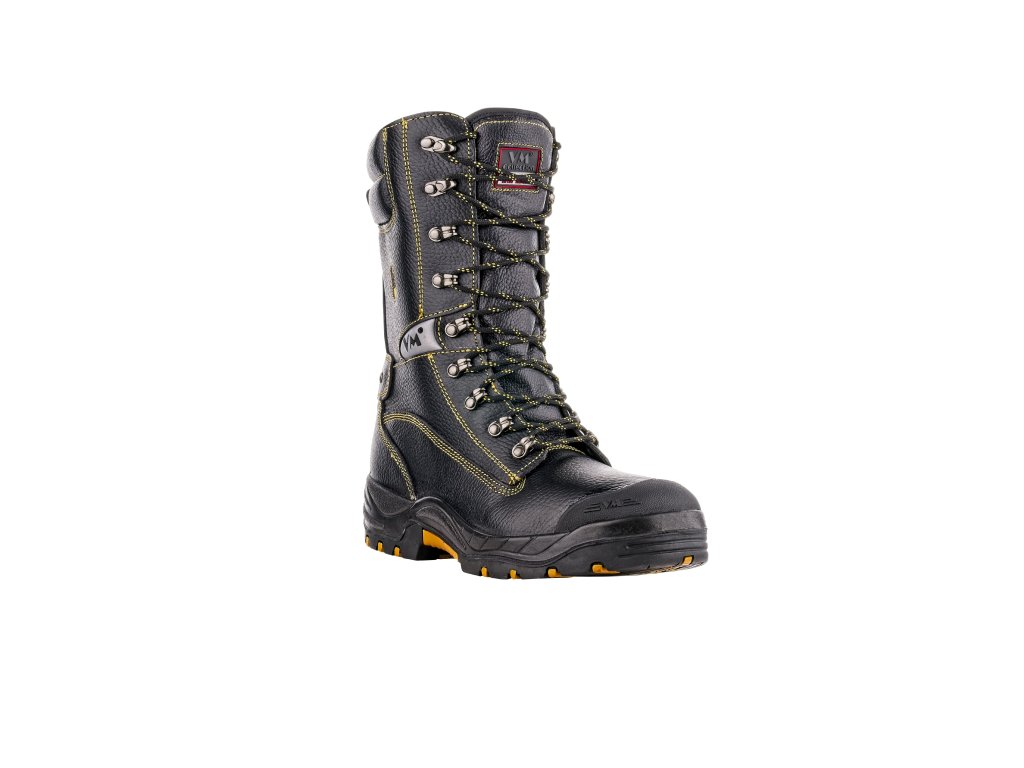 Značka lesníckej obuvi VM ponúka robustnú odolnosť a celodenné pohodlie pre mužov, ktorí vykonávajú prácu v lese pri ťažbe dreva.