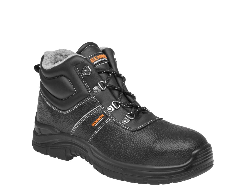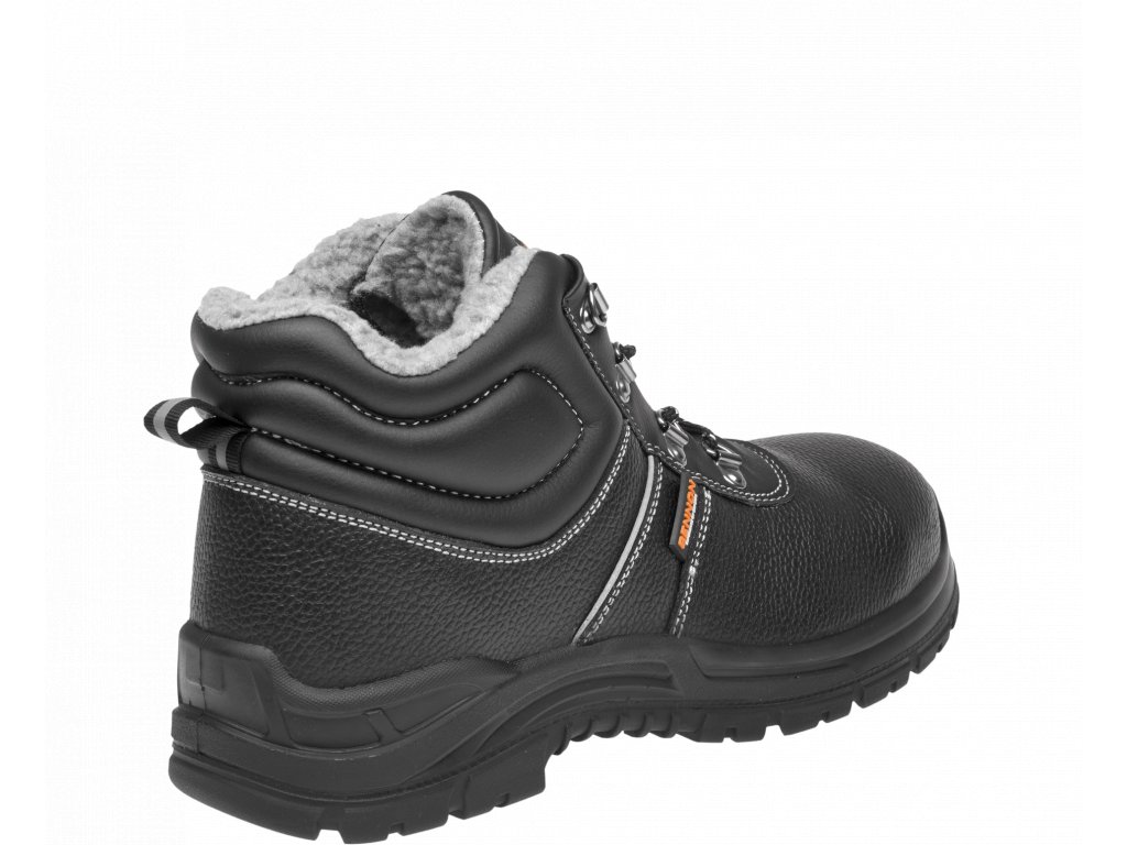 Tradičný členkový model pracovnej obuvi zateplený podšívkou z šedého plyšu. Obuv je určená pre zimné obdobie či chladné prevádzky.